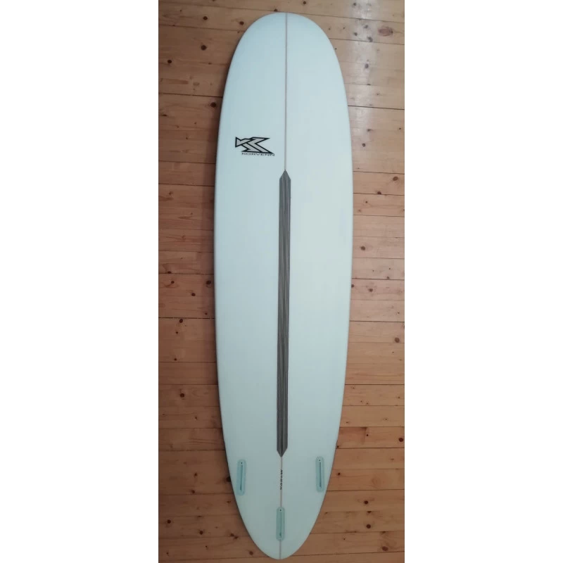 Avec un noyau EPS à 20kgs/m3, une latte centrale, des renforts carbone et une stratification en résine époxy, cette planche de surf est robuste et légère.
