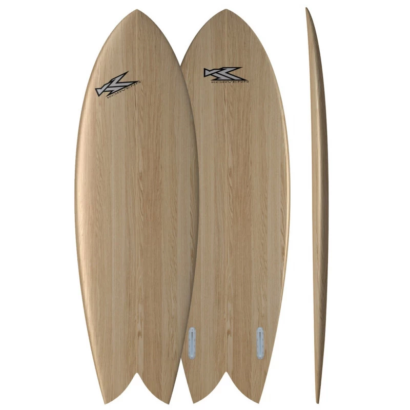 Magnifique planche de surf Retro Fish en bois Paulownia. Board idéale pour les vagues petites et moyennes, pour les afficionados du carving et pour un surf fluide et facile.