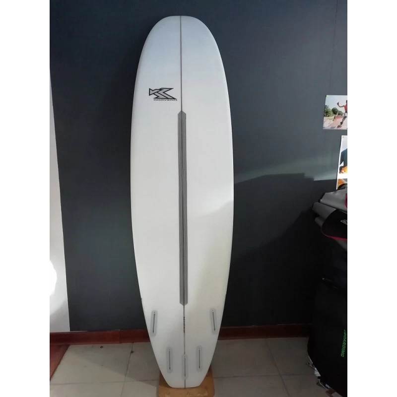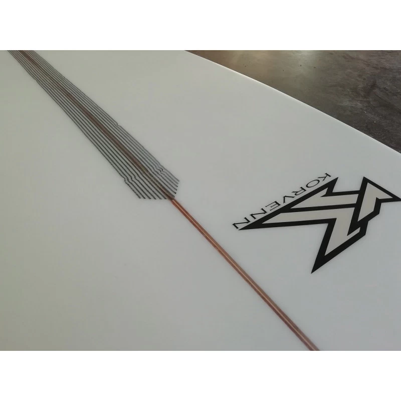 Construite en epoxy avec un pain de mousse de 26kgs/m3, pourvu d’une latte centrale et des renforts carbone, Korvenn propose une construction haut de gamme à la finition haut de gamme.