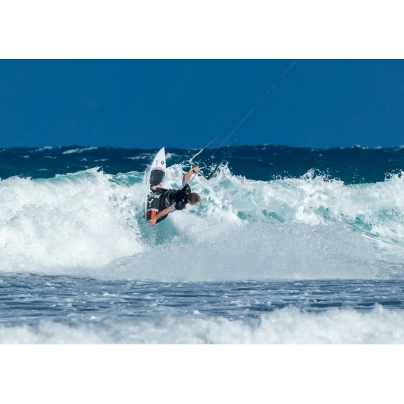 Sa maniabilité en fait un très bon surf dans les petites/moyennes vagues et son double concave apporte de la douceur en courbes avec un bon appui sous la voute plantaire grâce au pont concave.